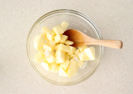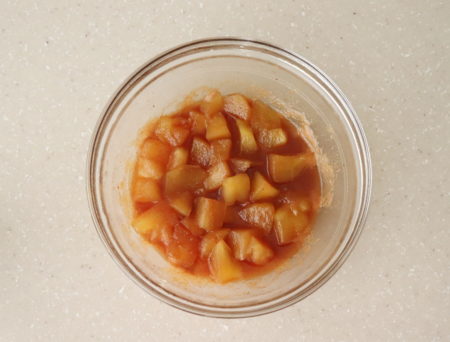 - りんごを7mm~1cm程度の角切りにして、