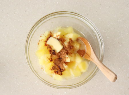 - シナモン・バター・ラム酒を加えてよく混ぜ合わせ、